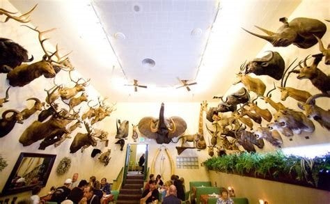A world famous restaurant that was founded by a big game hunter and bootlegger. He hung all of his trophy animals on the walls. When we went there to eat we always wanted to sit at the table under the elephant's head.